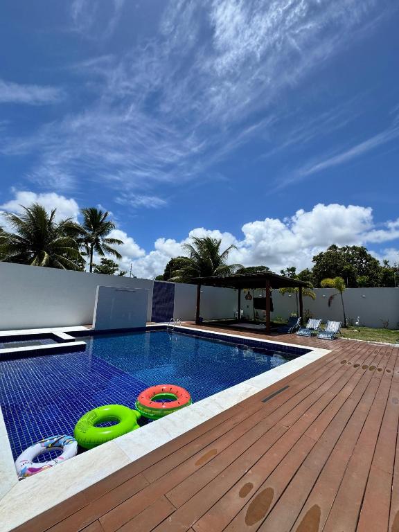 A casa é muito bonita, possui todos os utensílios na cozinha, garagem grande para 6 veículos. Além disso, tem uma boa churrasqueira e uma piscina enorme com hidromassagem. Fica a uns 5 minutos da entrada de Praia do forte, muito pertinho. Eu voltaria com certeza!