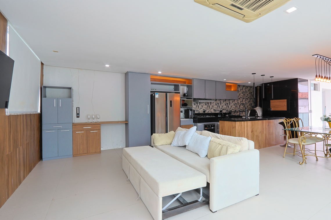 Apenas poucos quilômetros separam você deste paraíso. A PF Lounge é uma casa de praia espaçosa e elegante, pensada para você viver momentos inesquecíveis com família e amigos.